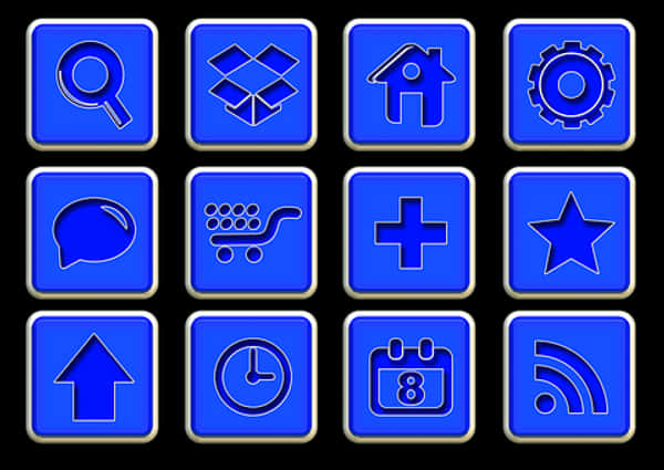 Blue Web Icons Set PNG with transparent background