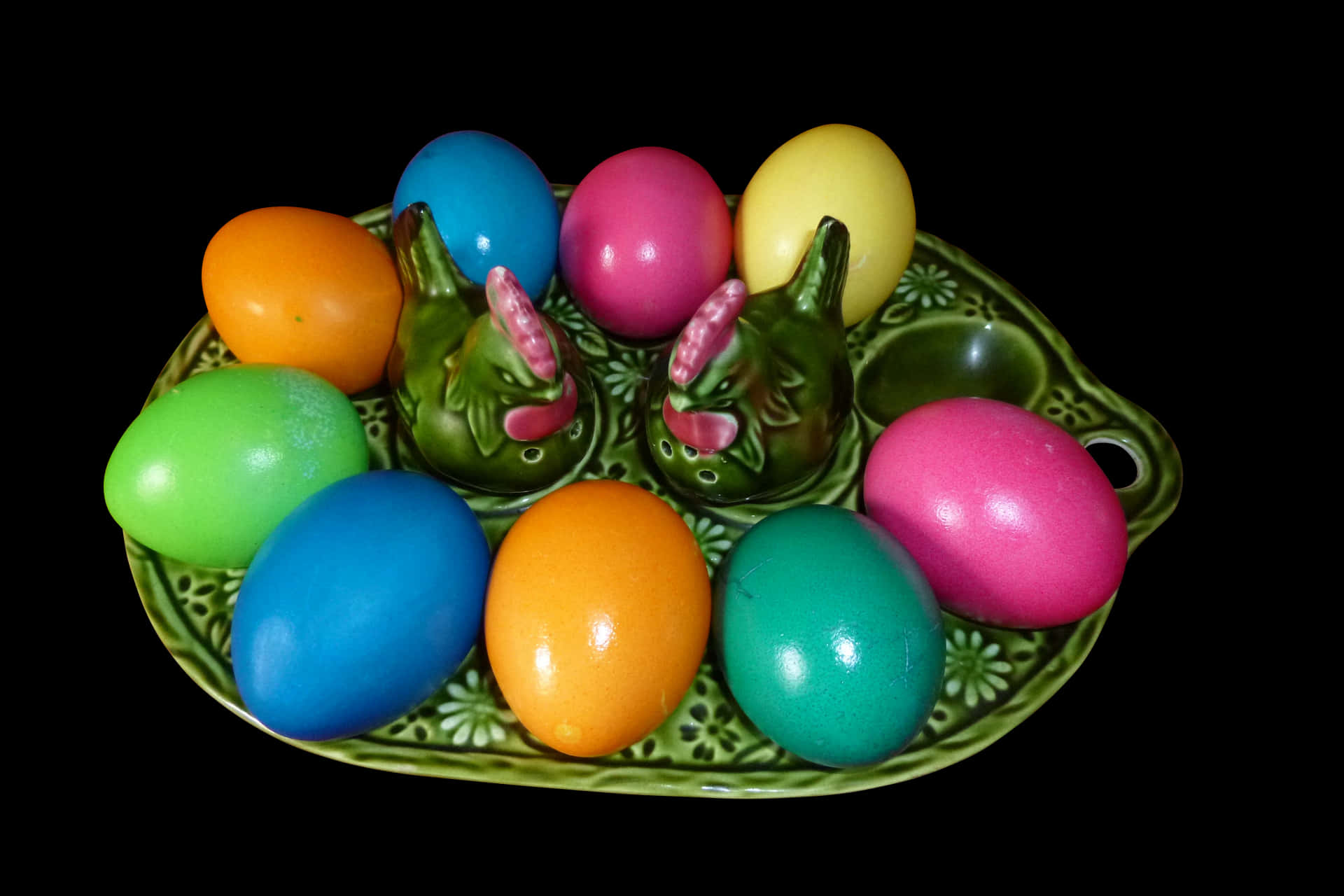 Colorful Easter Eggson Ceramic Bunny Plate PNG with transparent background