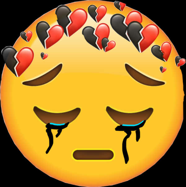 Crying Emojiwith Broken Hearts Crown PNG with transparent background