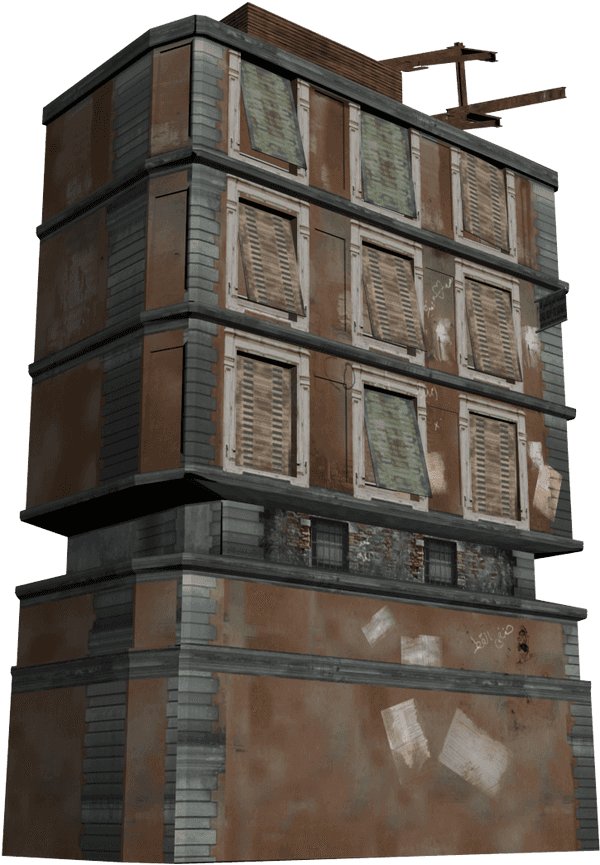 Derelict Apartment Building3 D Model PNG with transparent background