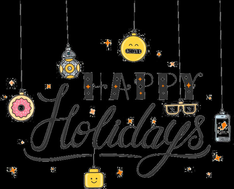 Festive Emoji Ornaments Happy Holidays PNG with transparent background