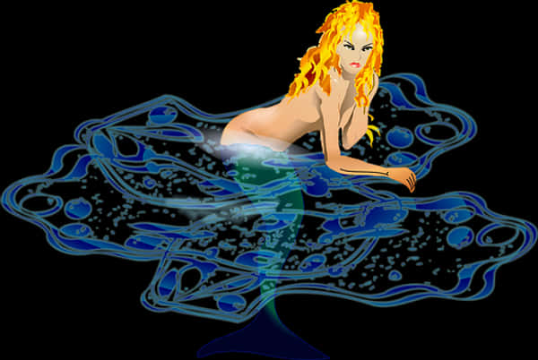Flame Haired_ Mermaid_ Art PNG with transparent background