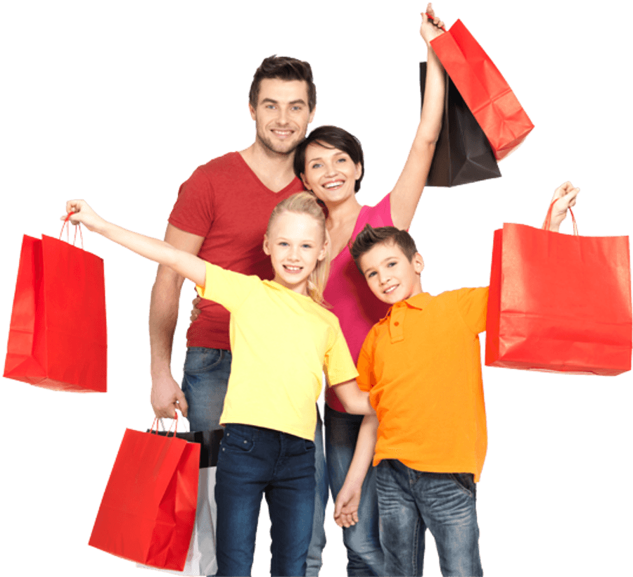 Happy Family Enjoying Shopping Together PNG with transparent background