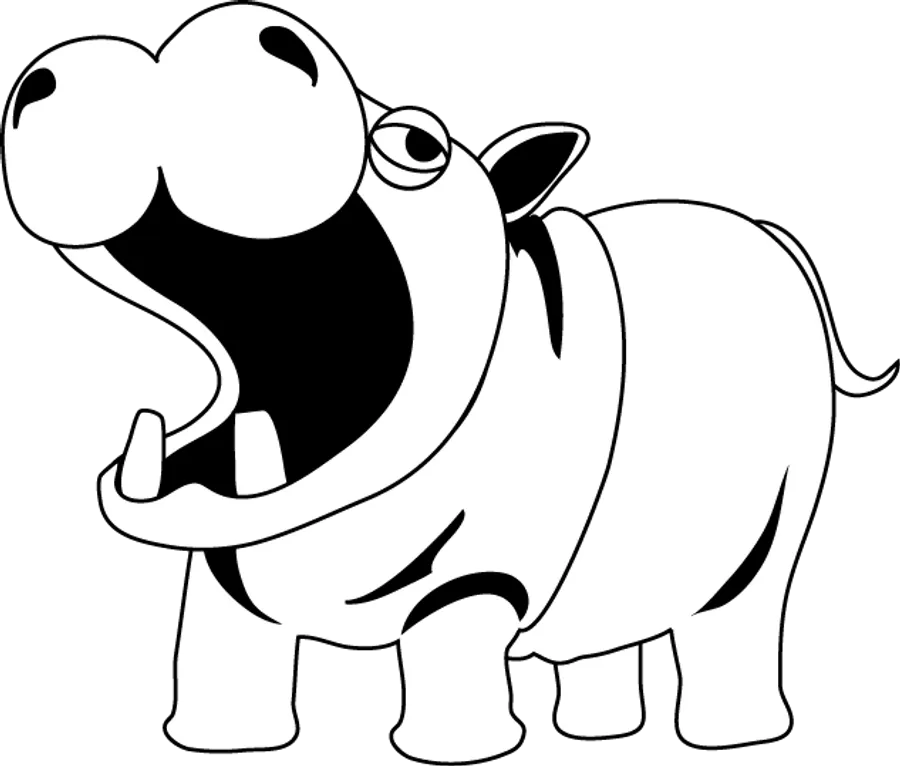 Hippopotamus Clipart Hipp - Cartoon Picture Hippo Black And White, HD Png Download PNG with transparent background