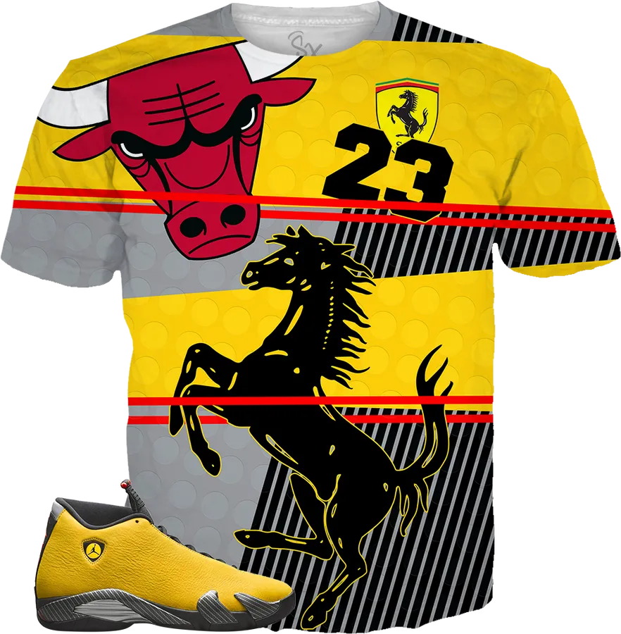Jordan 14 Yellow Ferrari Shirt, HD Png Download PNG with transparent background