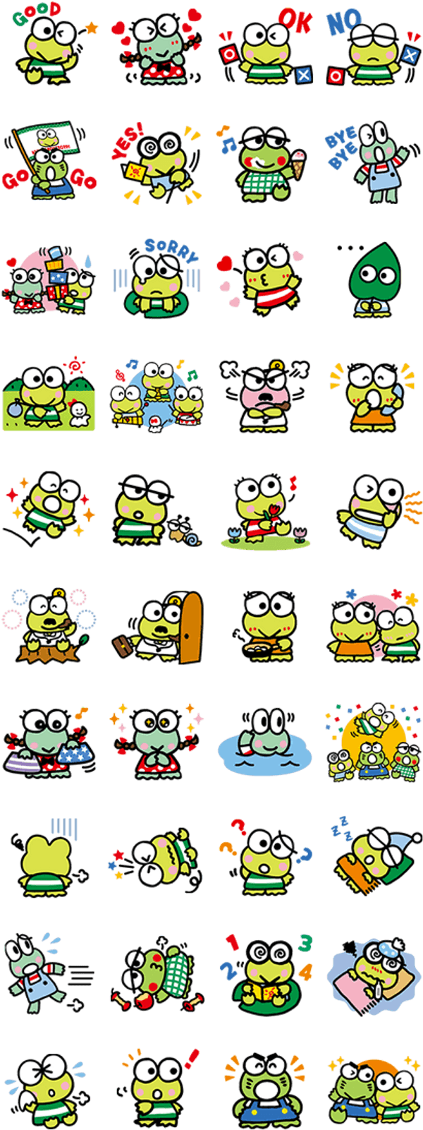 Keroppi Expressionsand Activities Compilation PNG with transparent background