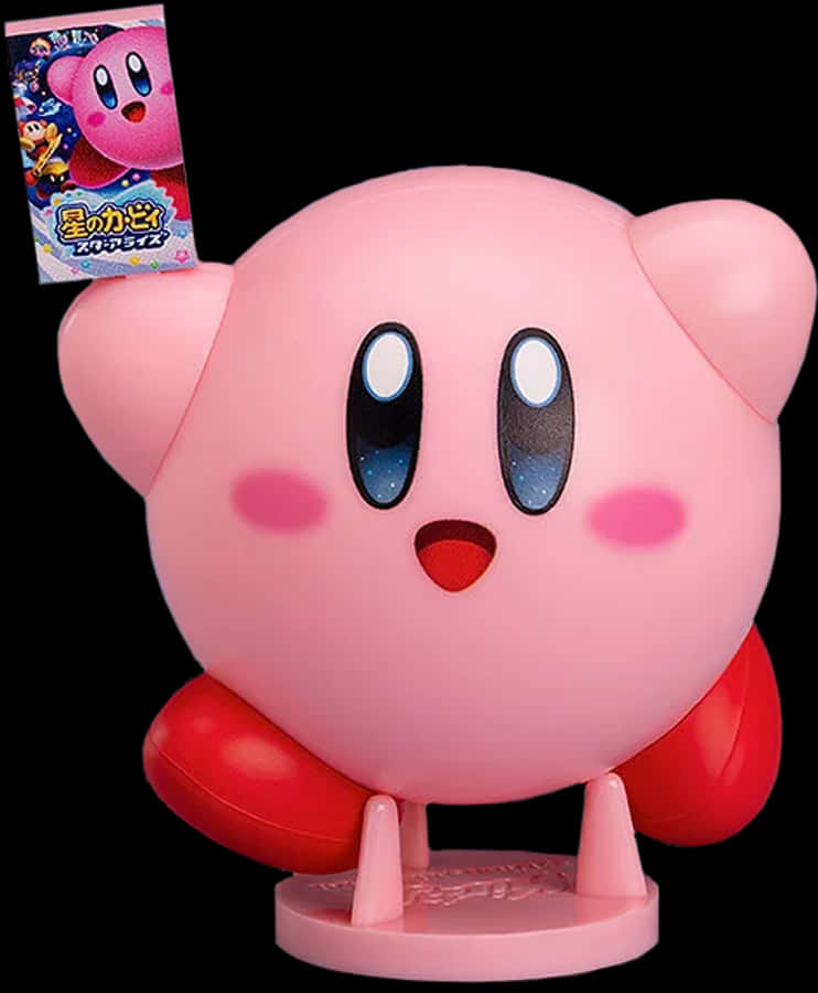 Kirby Figurewith Game Advertisement PNG with transparent background