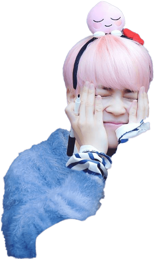 Pink Haired Person Smiling With Plush On Head PNG with transparent background