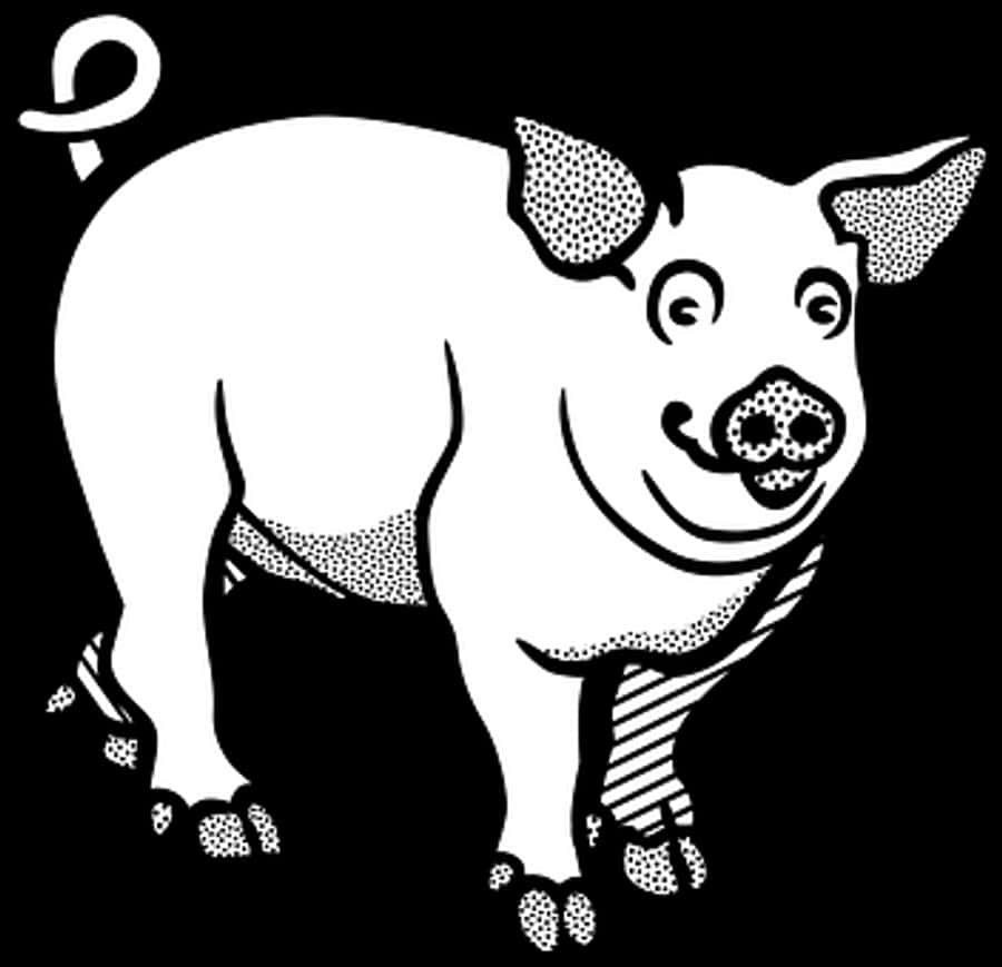 Smiling Blackand White Pig Illustration PNG with transparent background
