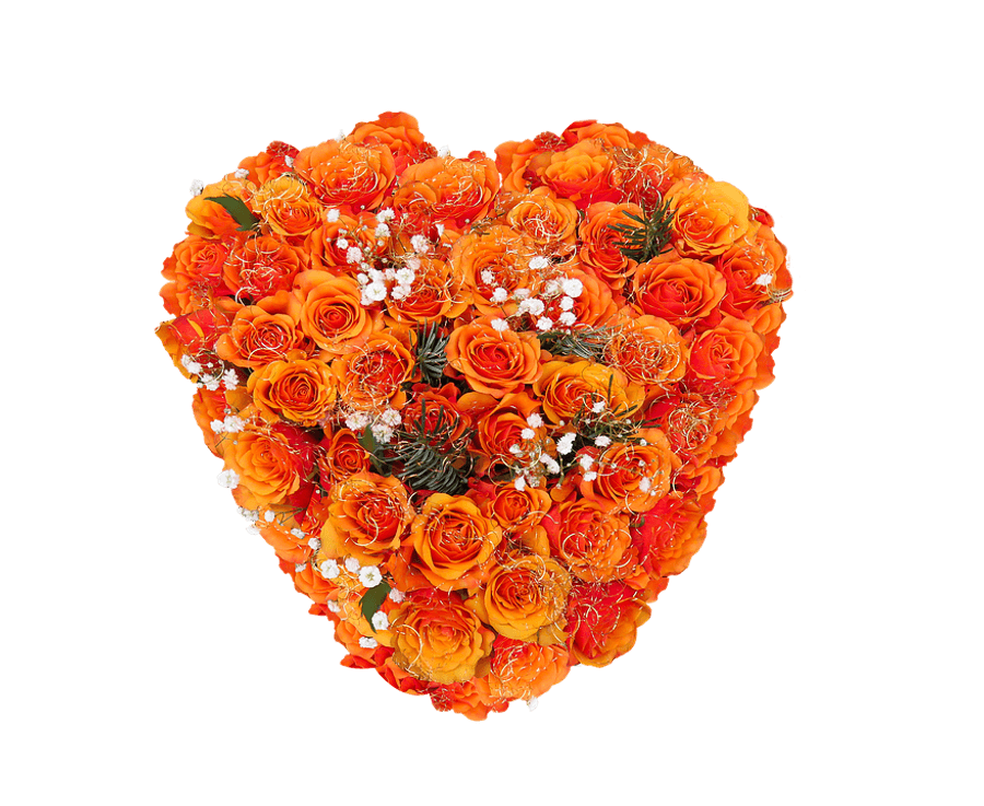 Vibrant_ Orange_ Rose_ Heart_ Bouquet PNG with transparent background