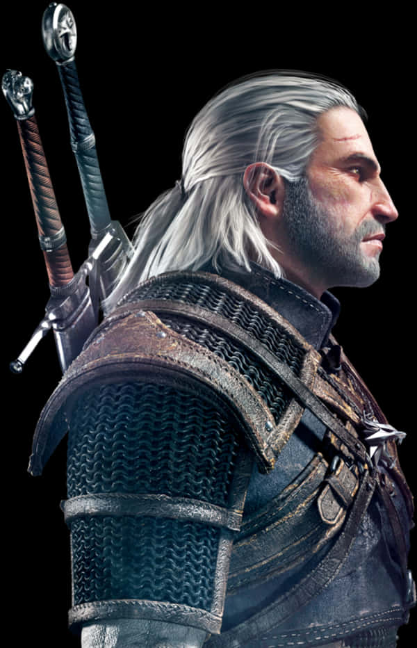 White Haired Warrior Profile View PNG with transparent background