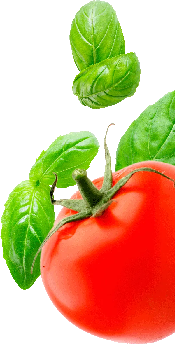 • Fresh Tomatoand Basil Leaveson Black Background.jpg PNG Image